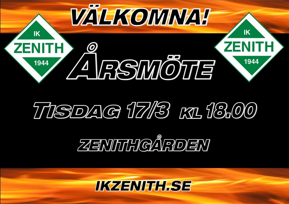 Vi hälsar alla medlemmar varmt välkomna till årsmötet som startar på tisdag 17/3 kl 18.00 i Klubbstugan Ta chansen att att komma ner och lyssna och påverka i din egen förening! Det kommer finnas kaffe & bulle! /Styrelsen IK Zenith 10 mar 2015 0kommentarer